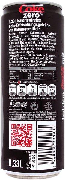 | Standard data | Brand: | CCZ (Coca-Cola zero) |
